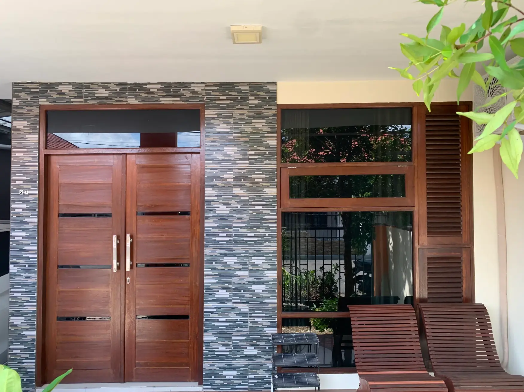 This house is equipped with three bedrooms that can accommodate up to 6 adults. Two of the three bedrooms are equipped with air conditioning. Each bedroom is equipped with a small wardrobe that is sufficient to store your needs during your stay.