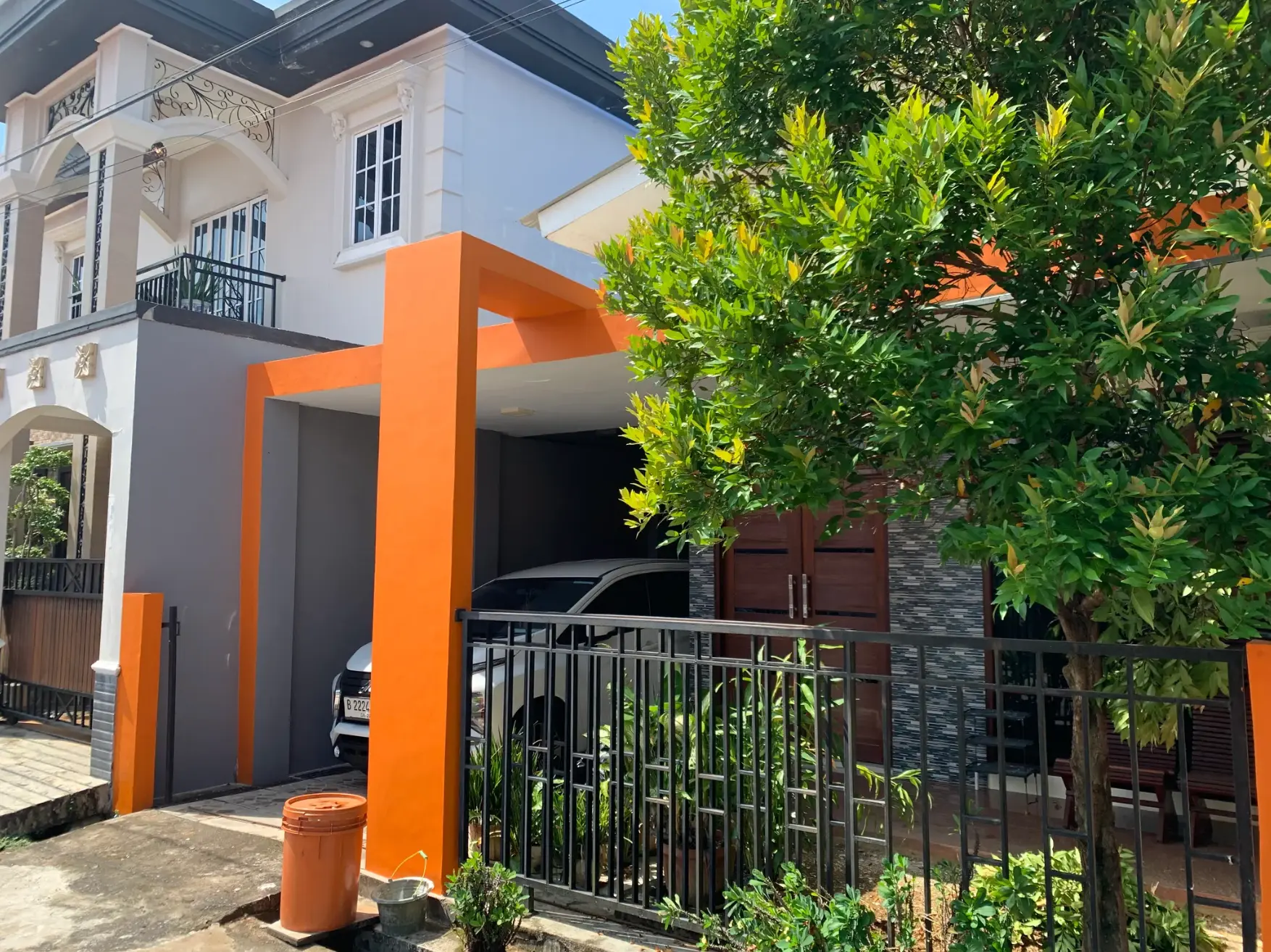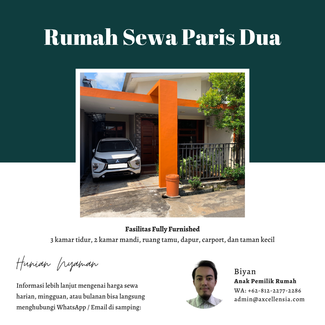Other facilities available in this house are a carport that is large enough for MPV-sized cars, a garden and terrace for relaxing, a living room, a television room with a sofa, a fully equipped kitchen, and a clothes drying room.